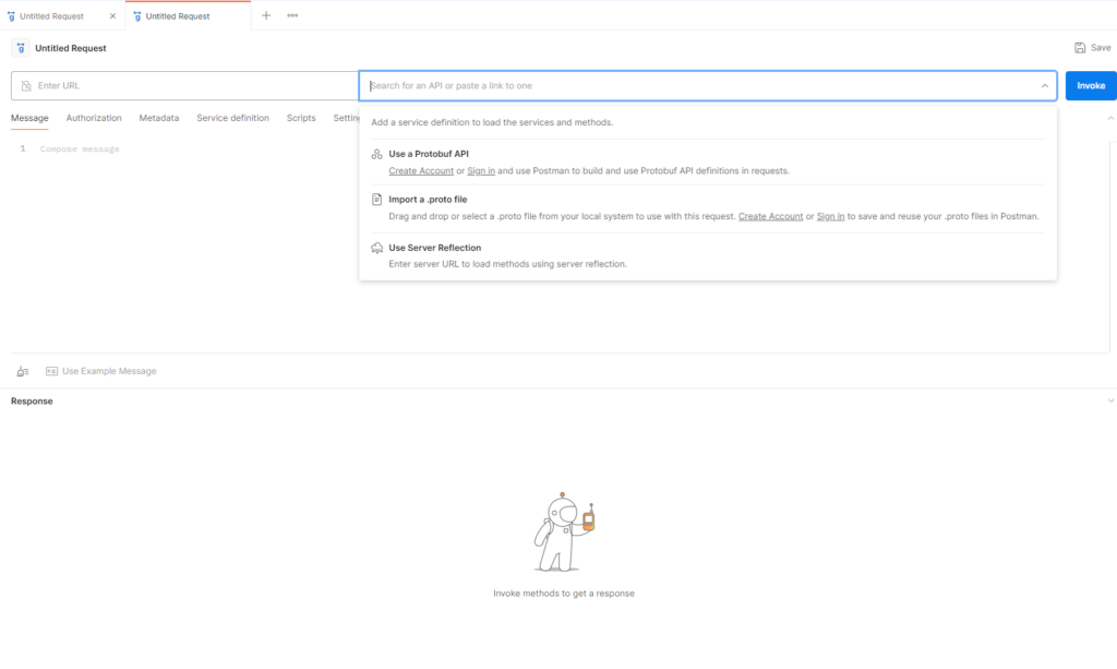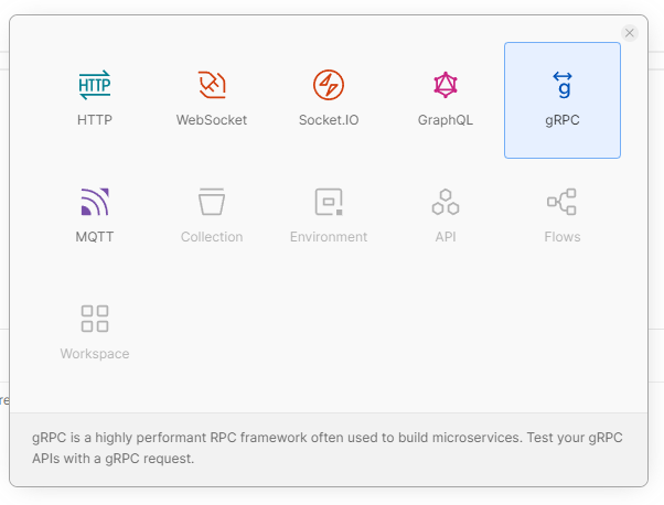 - Click New → gRPC Request