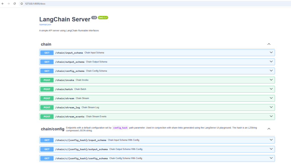 This is possible because LangChain runnables are self-describing. From this, LangServe builds: